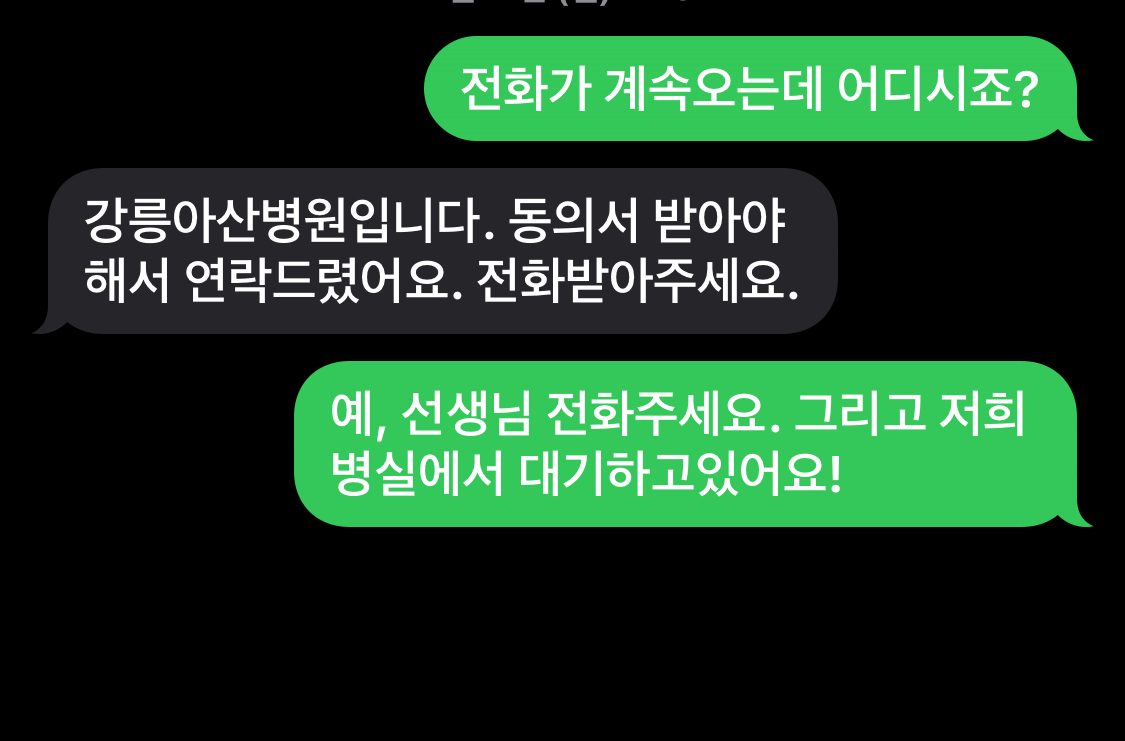 신나게 내려가 공차 앞에 섰는데! 바로 호출이 옴? 동의서를 받아야 하는데 병실에 없어서 전화했다고 얼릉 오시라고.