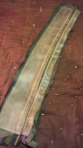 위판 가죽 2피스가 지퍼를 통해 연결된 모습입니다.